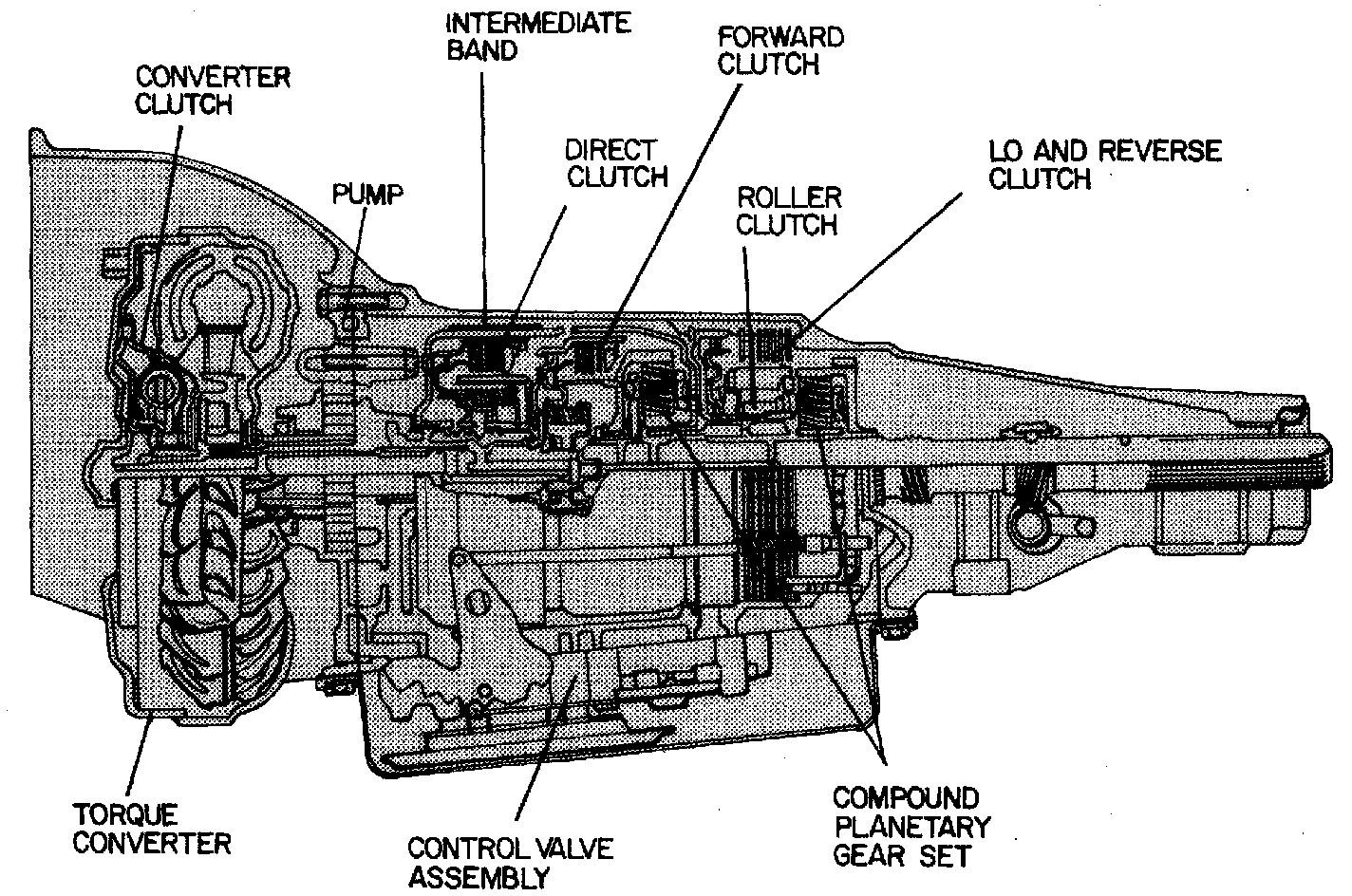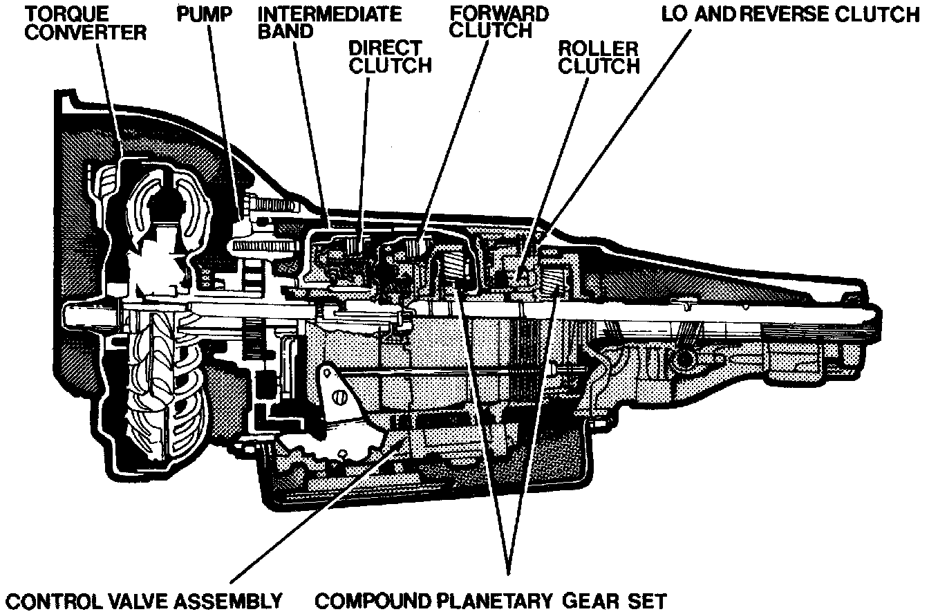 These transmissions, see images, are fully automatic units consisting primarily of a three-element hydraulic torque converter and a compound planetary gear set. On 200C models the torque converter includes a converter clutch.