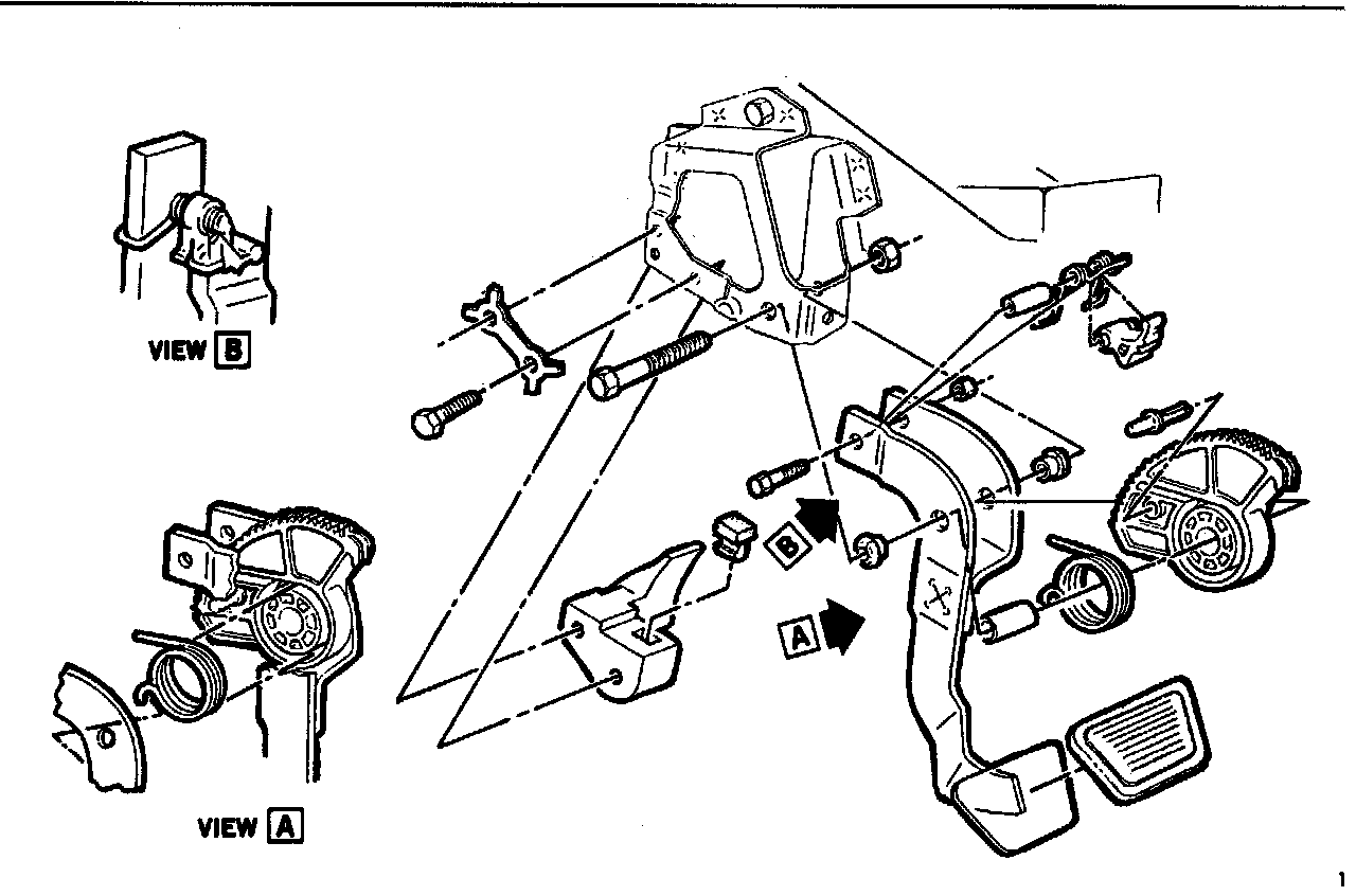 1. Clutch is adjusted by lifting clutch pedal up to allow mechanism to adjust cable. Depress pedal slowly several times to set pawl into mesh with detent teeth.