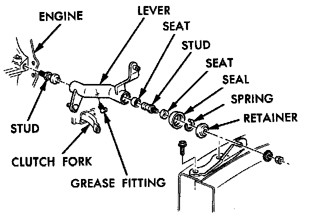 6. Support the clutch pedal upward against the bumper stop to release the pawl from the detent. Attach the other end of the cable to the clutch release lever.