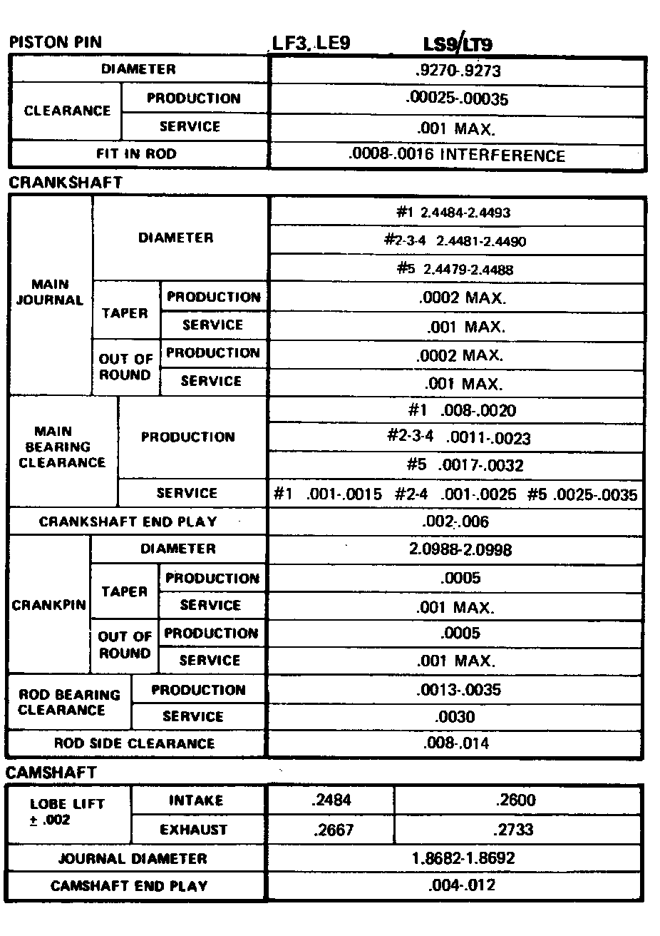 Continued Engine Specifications: