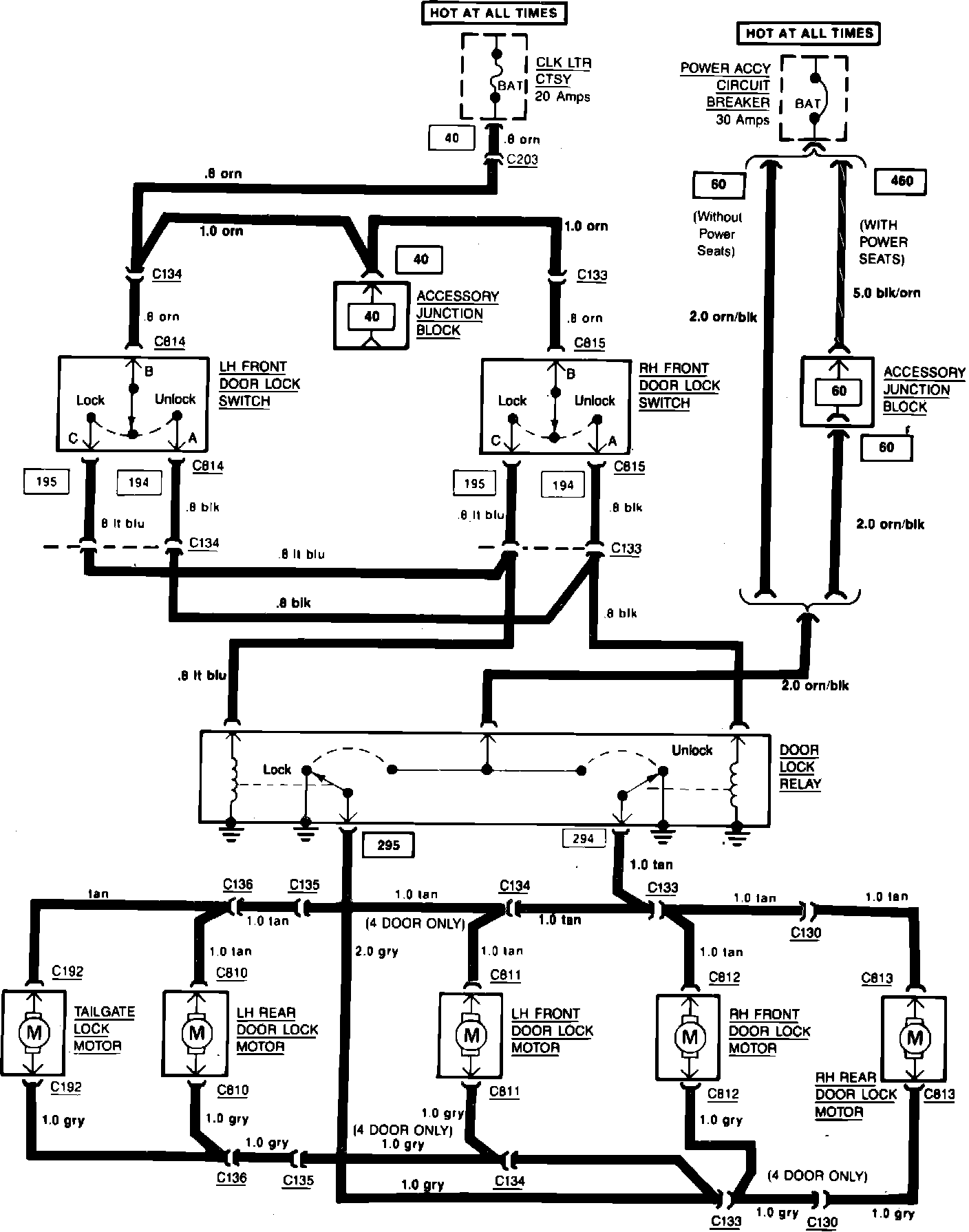 Power Door Locks Wiring Circuit: