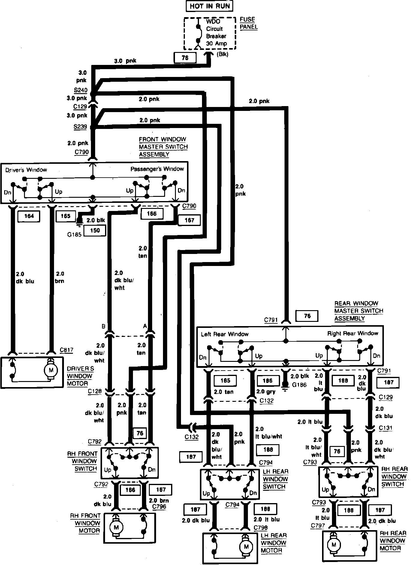 Fig. 420 Power Windows Wiring Circuit. 1983 Caballero, El Camino, Malibu & Monte Carlo: