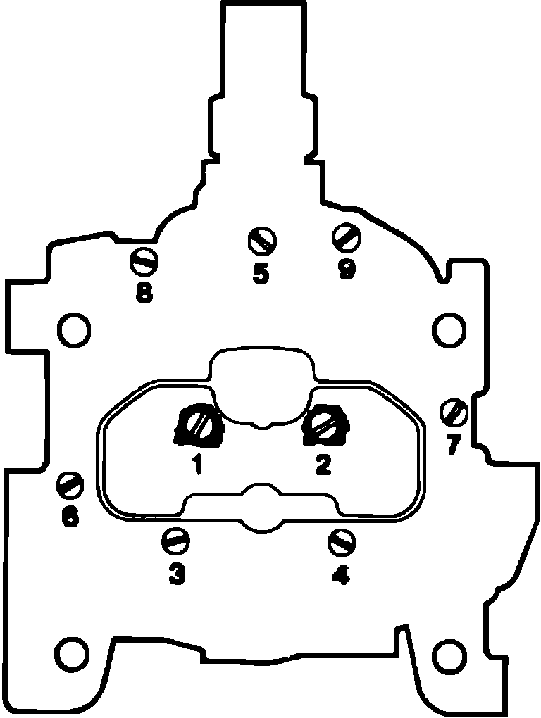 43. Install and tighten in sequence, Fig. 3, air horn to float bowl attaching screws.