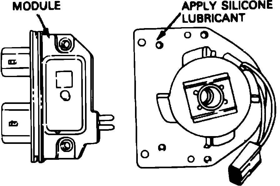 4. Reverse procedure to install. Prior to installation, coat bottom of new module with dielectric grease, Fig. 5, (furnished with new module) to aid in heat transfer into distributor housing. Failure to apply grease will cause excessive heat at module and premature module failure.