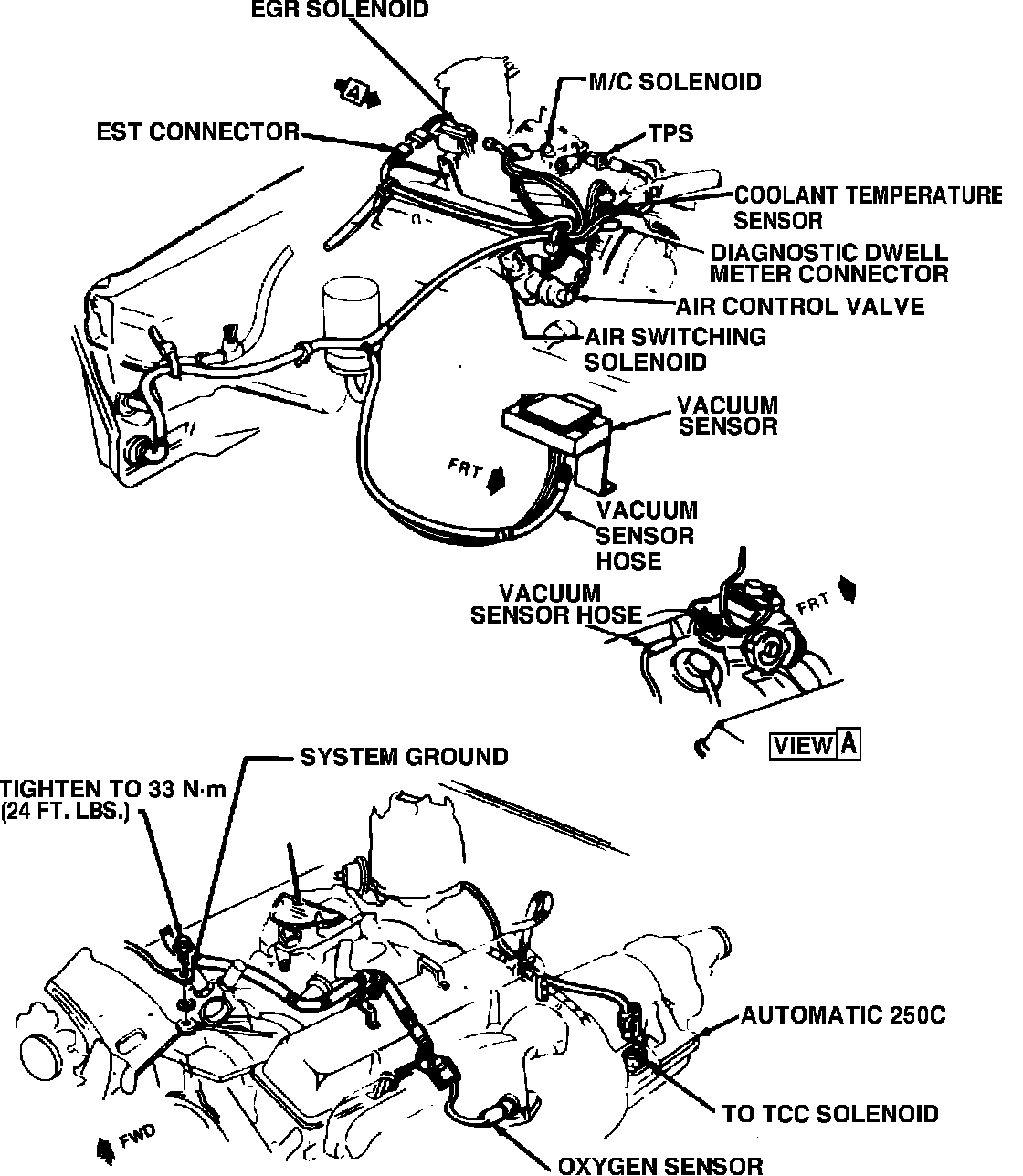 Fig. 57 Emission components locations. Caballero & El Camino V8-305: