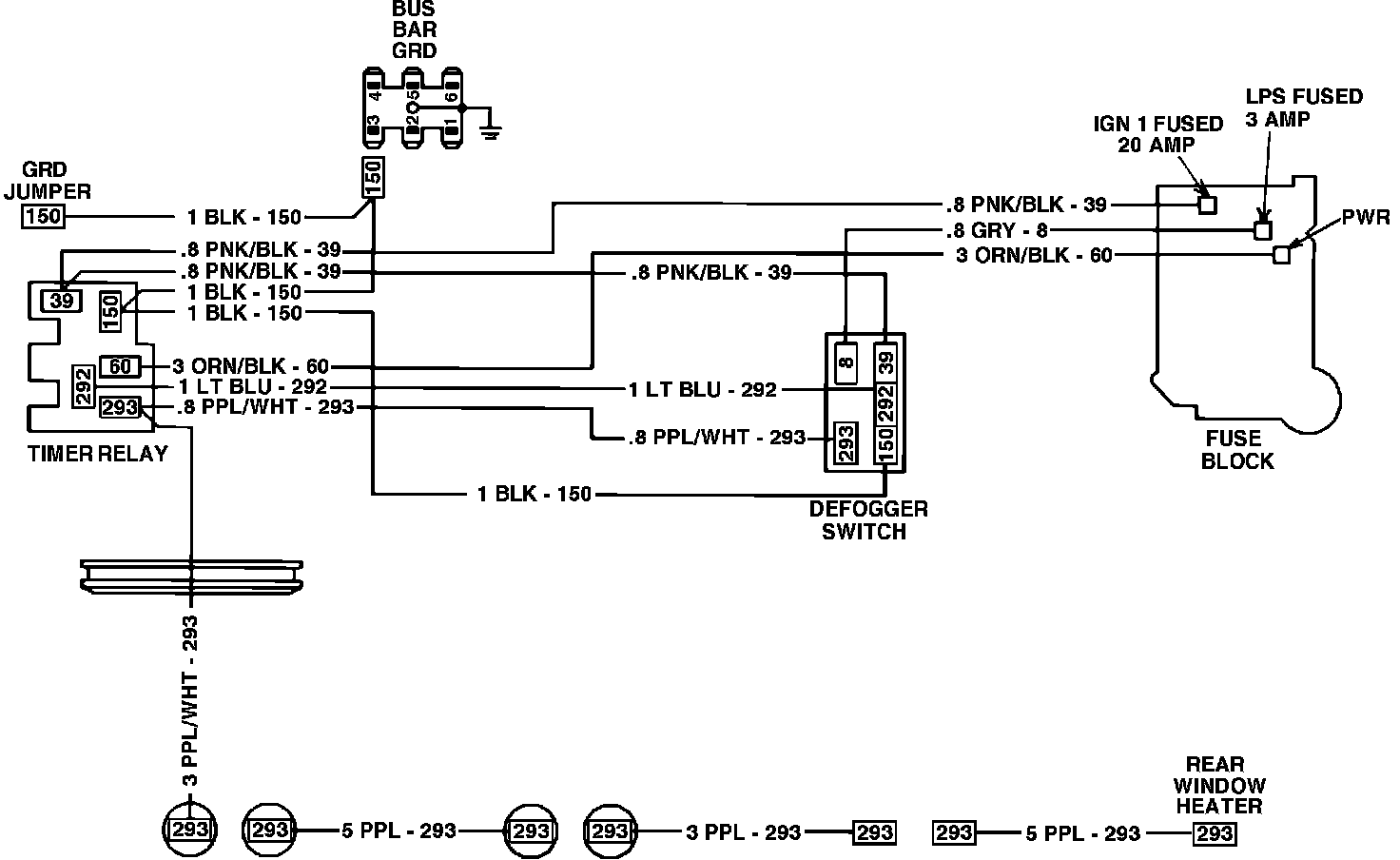 Rear Window Defogger Wiring Circuit:
