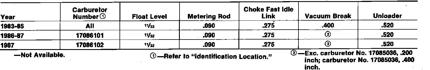 Carburetor: Specifications