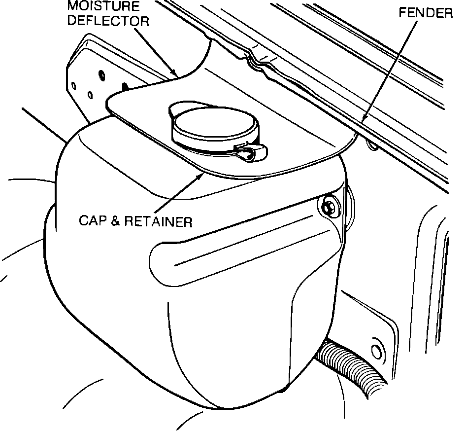 1. Remove cap and retainer from fluid reservoir.