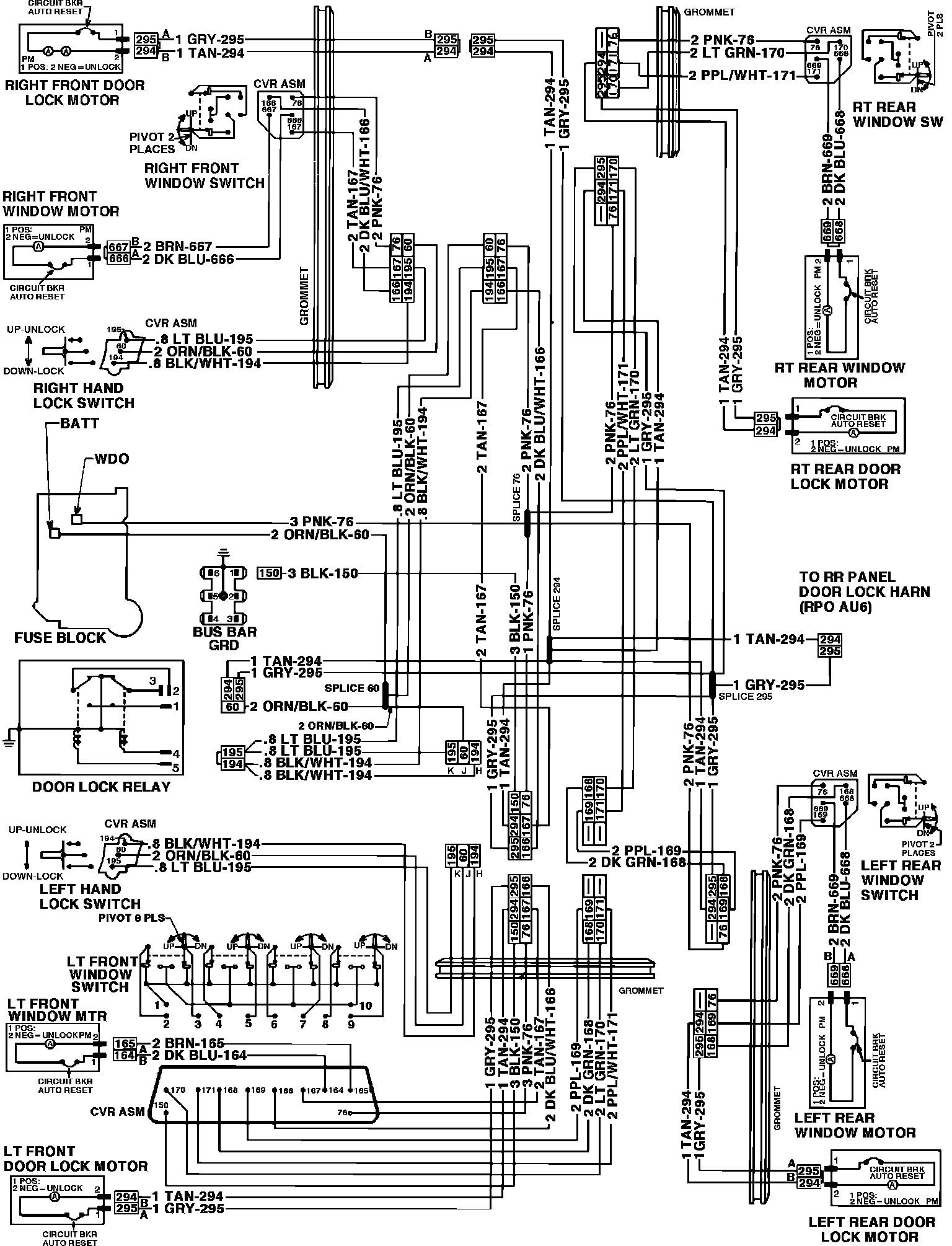Power Door Lock & Window Wiring Circuit. 4 Door: