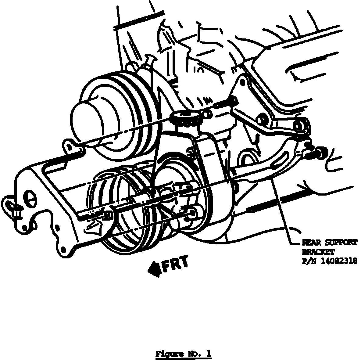If this condition is encountered, the power steering pump should be inspected to see if the rear support bracket is missing (See Figure No. 1).