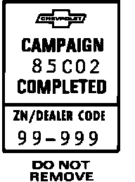 Each vehicle modified in accordance with the instructions outlined in this Product Campaign Bulletin will require a "Campaign Identification Label." Each label provides a space to include the five digit dealer code of the dealer performing the campaign service. This information may be inserted with a typewriter or ballpoint pen.