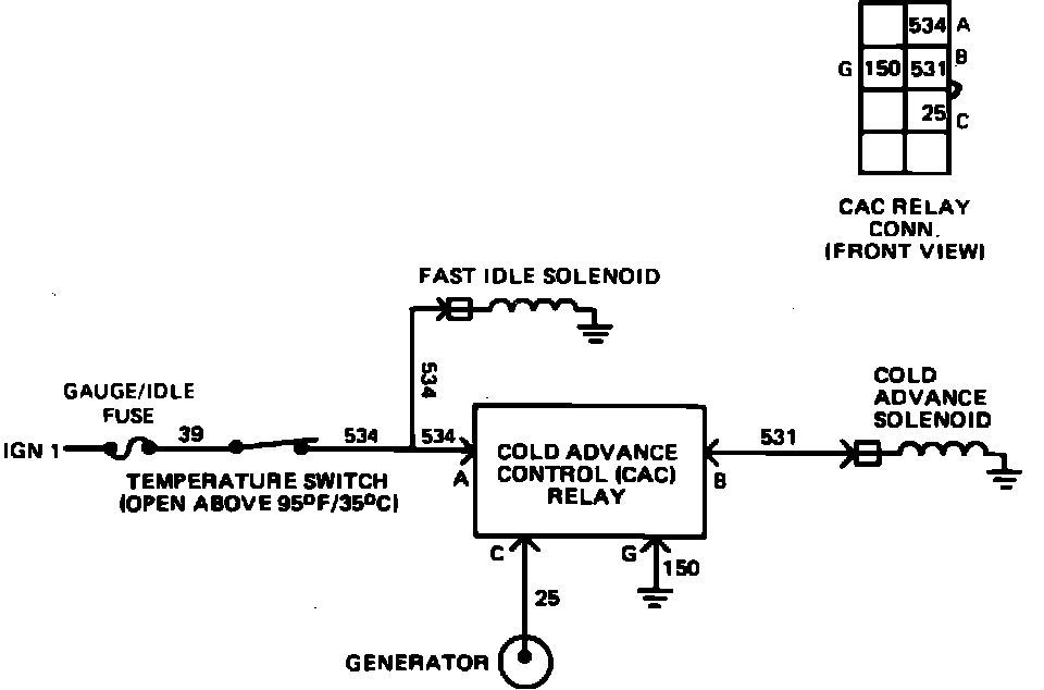 Fig. 35 Cold Advance Control (CAC) Circuit schematic. 1983-87 V8-379 diesel: