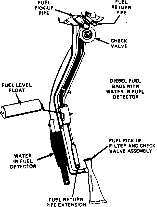 Fig. 1 Water in fuel detector, strainer & pickup tube assembly. 1982---83 models: