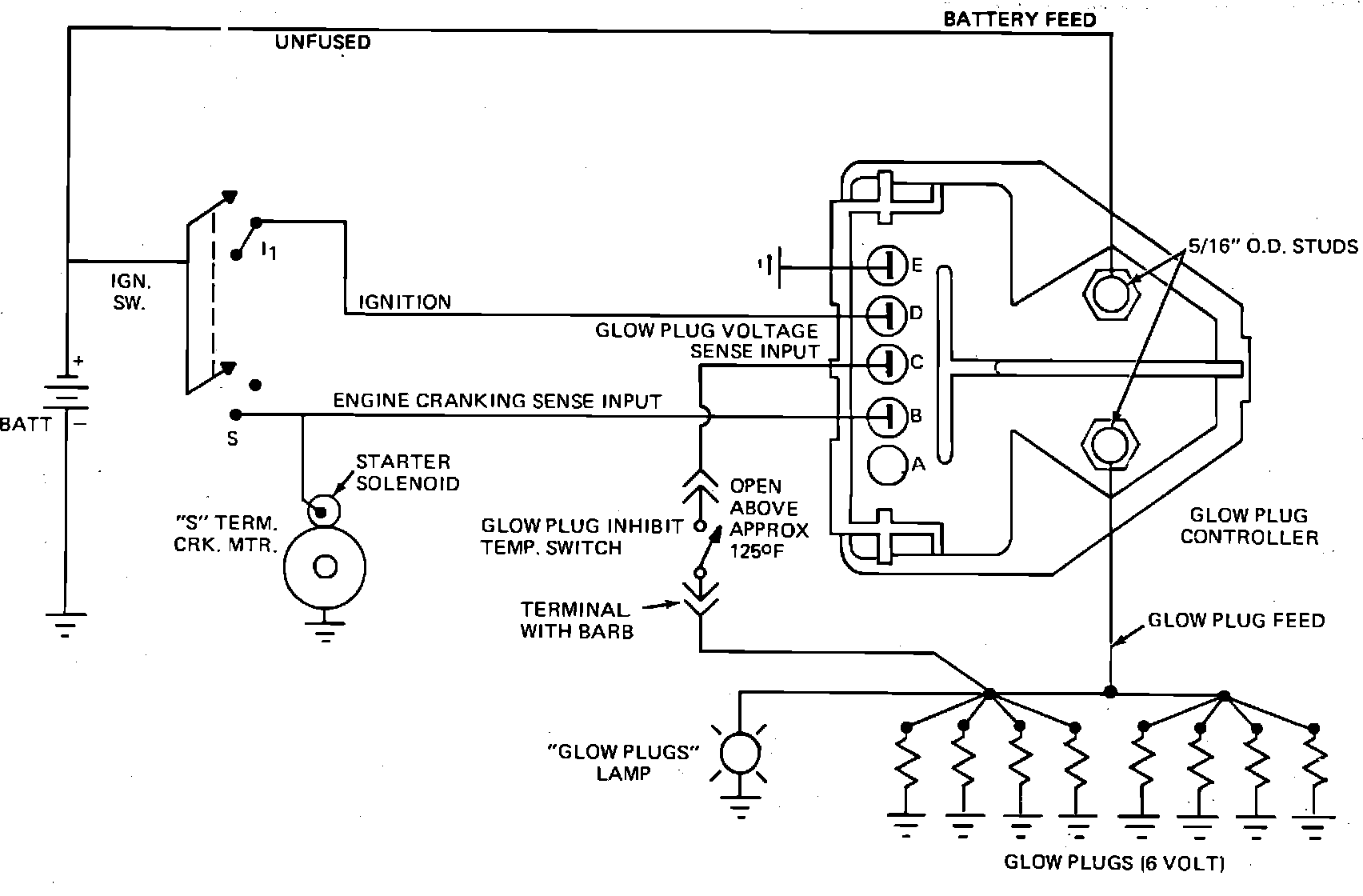 CAUTION: The glow plug relays are automatically controlled. Do not attempt to bypass the relay terminals of the controller as the glow plugs will be damaged.