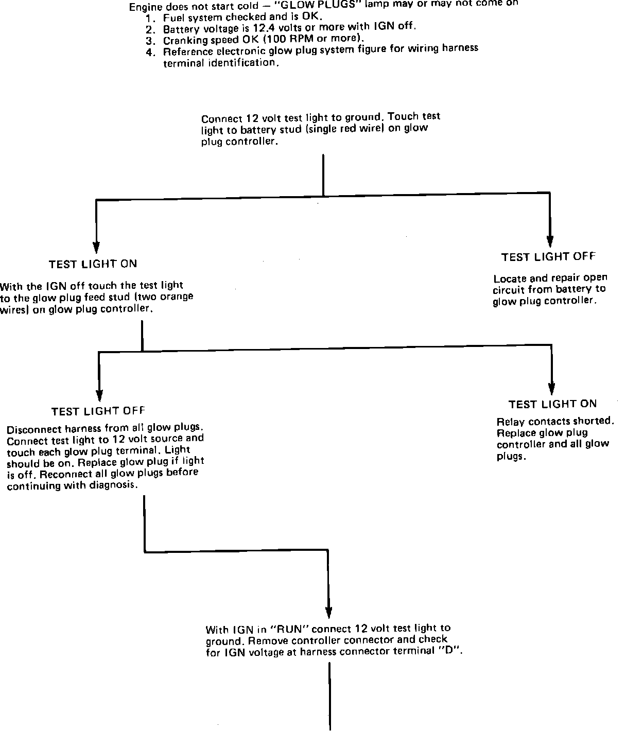 4. If glow plugs function normally but glow plug lamp fails to light, inspect connections and bulb in instrument panel jumper harness and repair as needed.