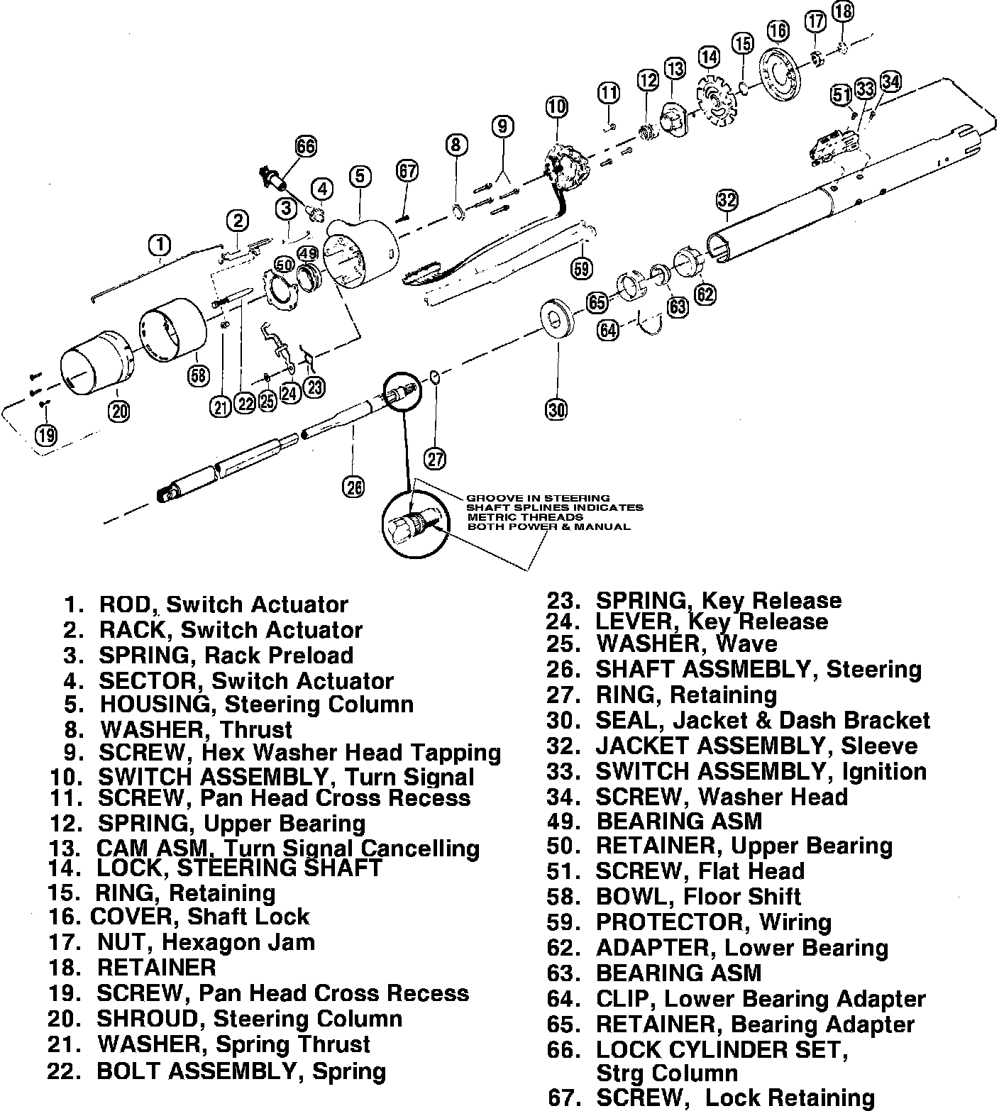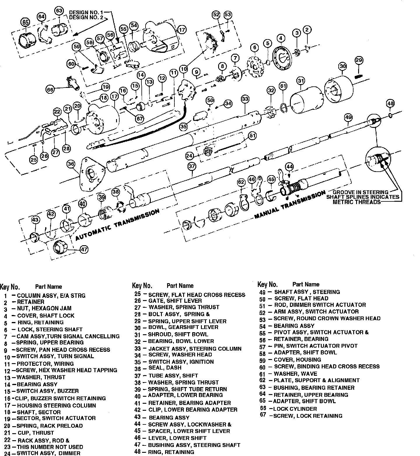 Fig. 8 Non-tilt steering column & components. Automatic & 3 speed manual, exc. Astro Van, S/T 10-15 & Safari:
