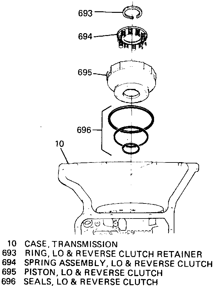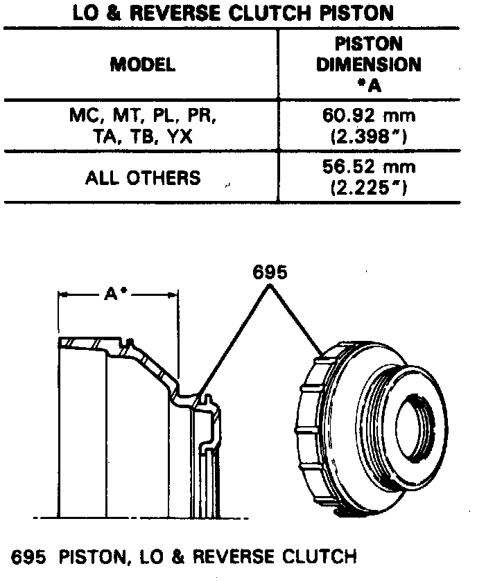 NOTE: A new lo and reverse clutch assembly for 1985 model transmissions, is now in production. The new 10 and reverse clutch assembly components may be used on all transmissions built from 1985 only if all the new service parts and procedures for selection of clutch pack clearance are used during assembly.