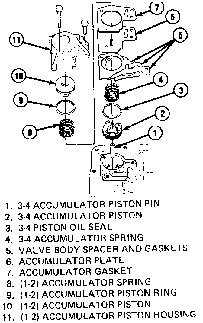 22. Install 1-2 accumulator cover and pin assembly onto case, torque attaching bolts to 8 ft lbs.