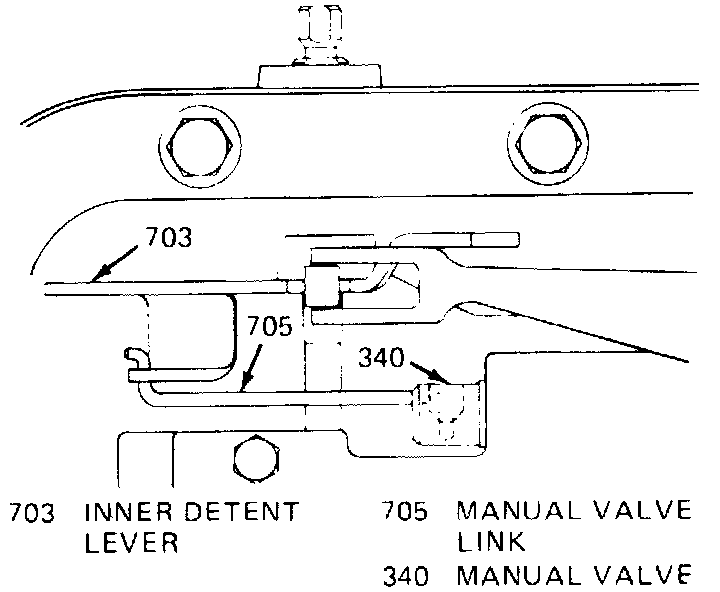 12. Install wiring harness clips, filter retaining clip, manual spring assembly, wire retaining washer and remaining valve body to case attaching bolts. Torque attaching bolts to 8 ft lbs.