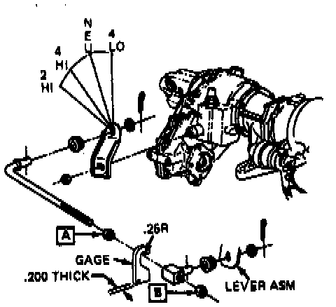 4. With shifter against 4 Hi stop, tighten rod nut (A) until it contacts gage.