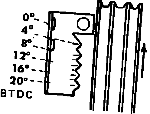 - While observing the mark with the timing light, slightly rotate the distributor until the line indicates the correct timing.