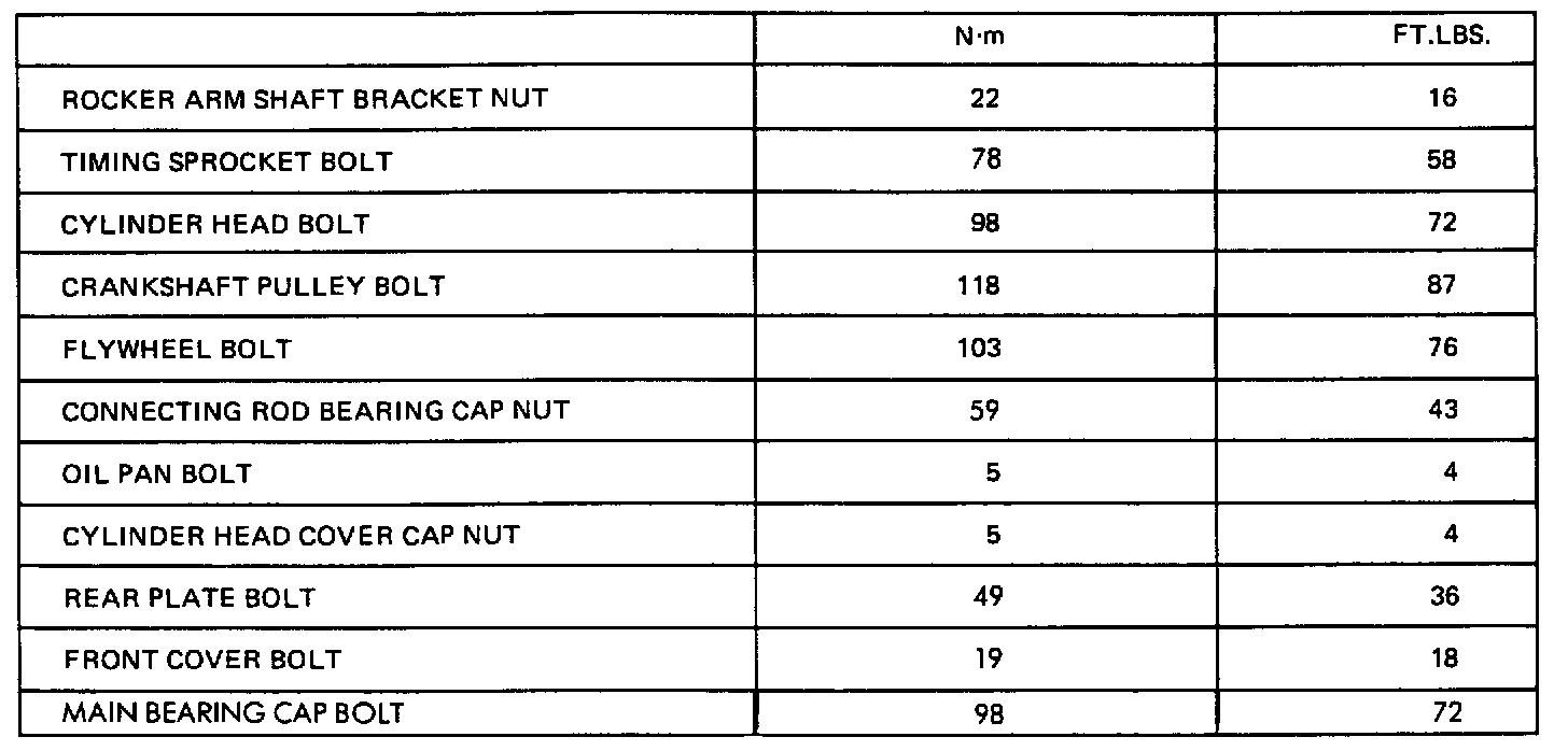 Torque Specifications: