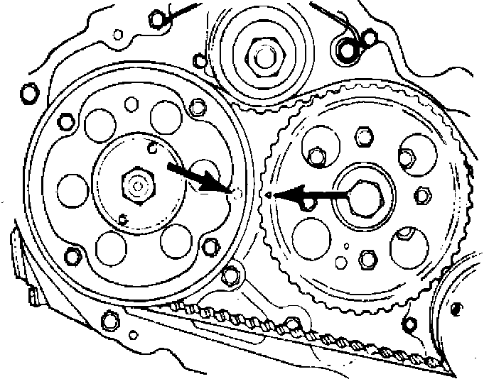 Fig. 22 Injection pump & camshaft pulley alignment: