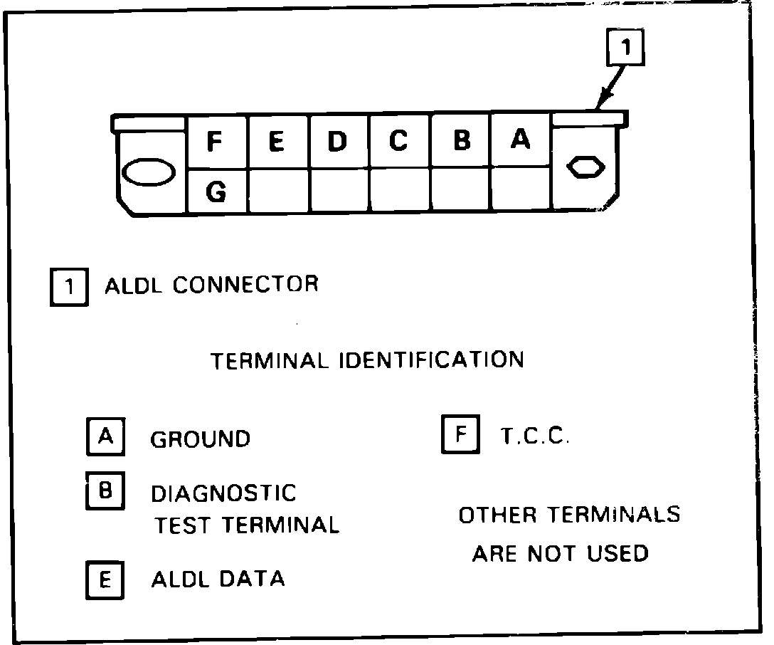 The ALDL, Figs. 3 and 4, is a twelve terminal connector that allows test equipment to diagnosis malfunctions in the DEC system. The ALDL is located under the instrument panel on all 1988 models and 1984-85 C and K Series. On 1984-85 G and P Series, the ALDL is located under the driver's seat. The connector terminals are used to diagnosis the system.