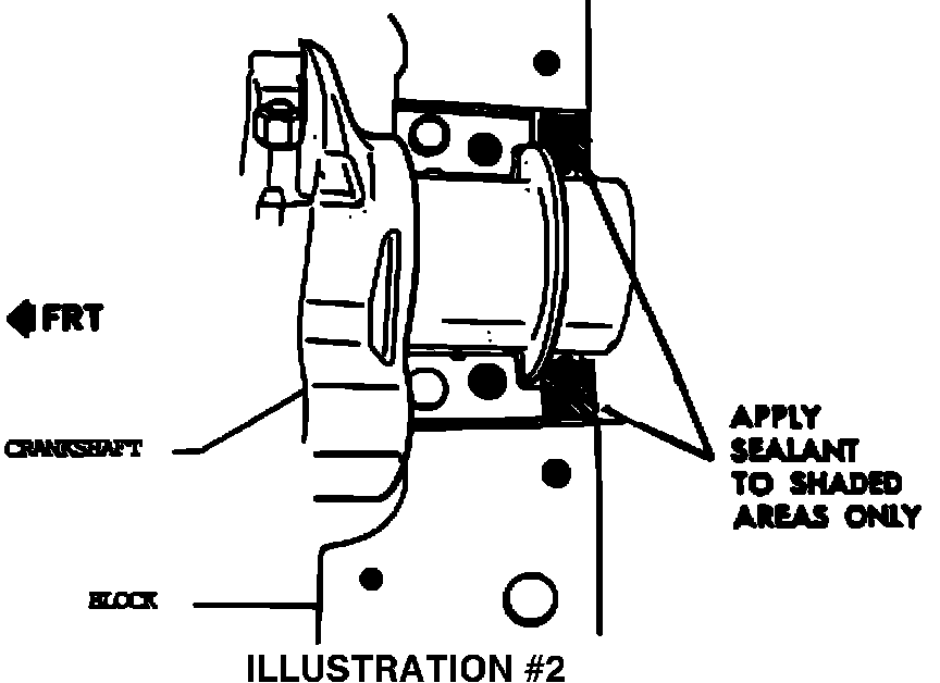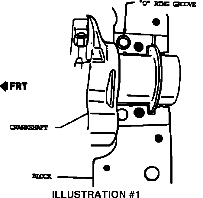 The "O" ring fits into a machined groove in the cylinder block (See Illustration #1.) The rear main bearing cap must also be sealed to the block in the normal manner using anaerobic sealer P/N 1052756 or equivalent, plus the "O" ring (See Illustration #2.)