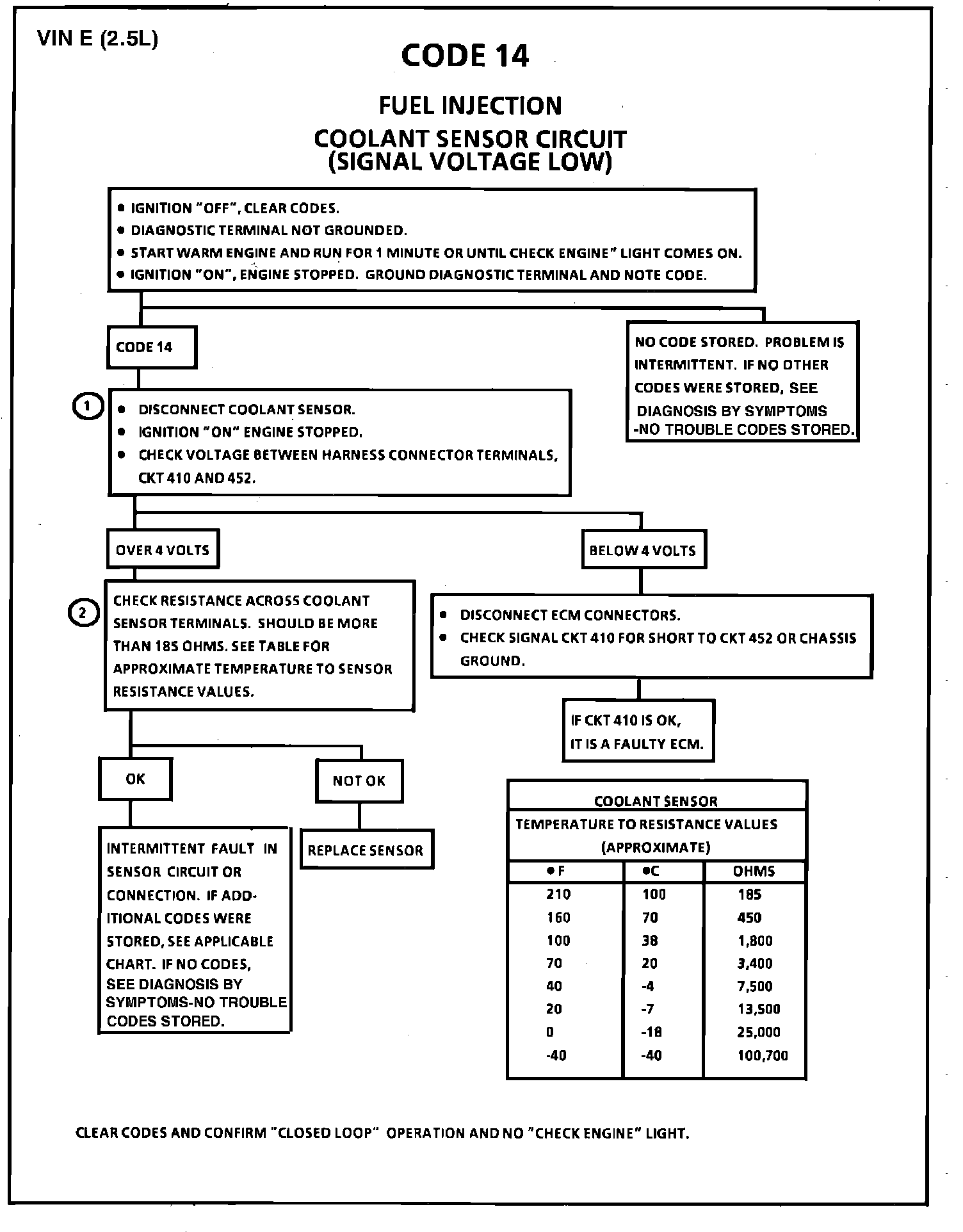 CODE 14 - COOLANT SENSOR (SIGNAL VOLTAGE LOW)