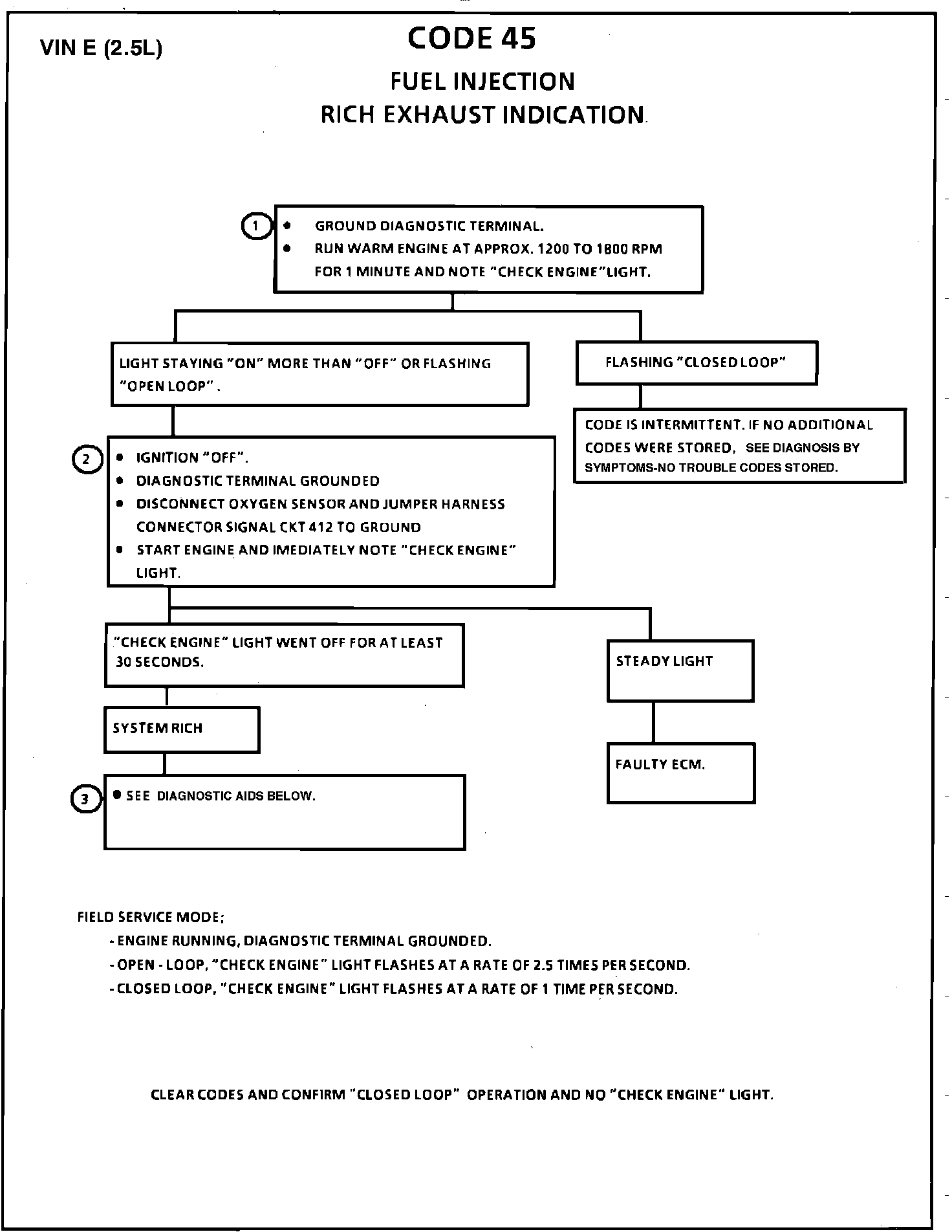 3. A Code 45 will not be caused by a faulty O2 sensor. Code 45 indicates a rich exhaust and diagnosis should begin with the items listed: