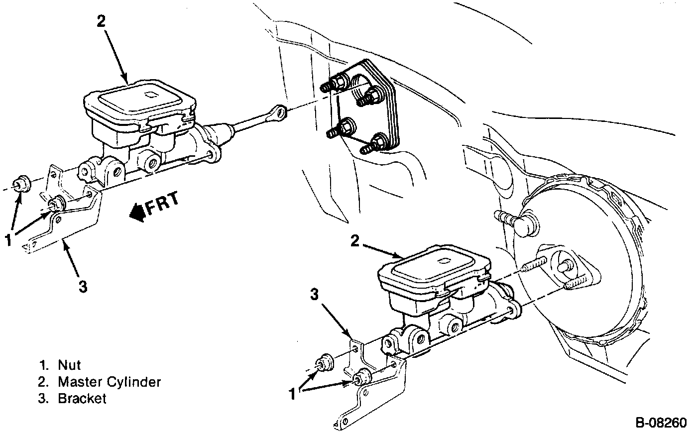 2. Install master cylinder, combination valve bracket and mounting bolts.