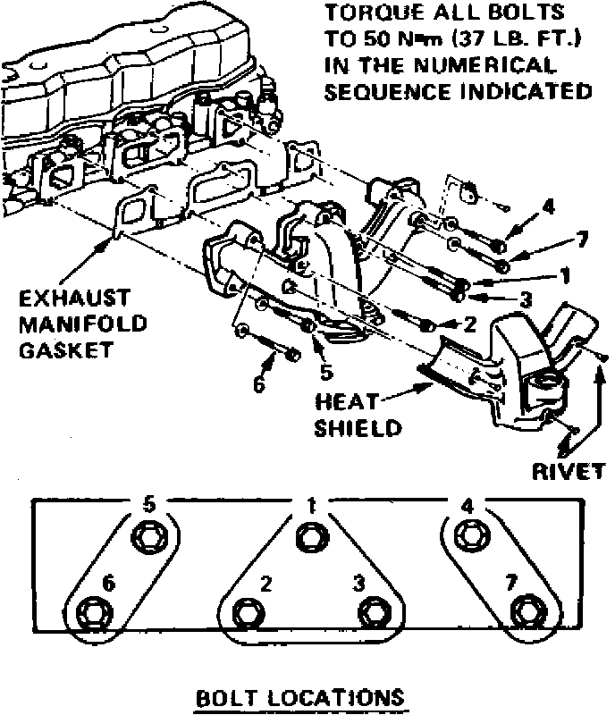 7. Torque exhaust manifold bolts to specifications in sequence shown in Fig. 4.