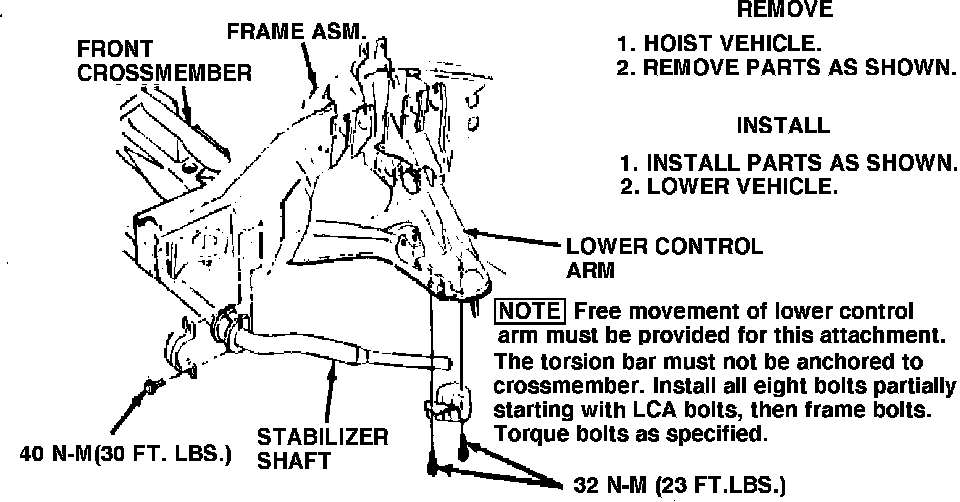 3. Remove stabilizer bracket to frame or body attaching bolts, then the stabilizer bar, bushings and brackets.