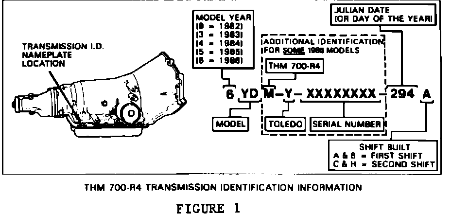 Beginning on October 21, 1985, or Julian Date 294 (refer to Figure 1) all 1986 THM 700-R4 transmissions have been built with control valve assemblies that do not use a throttle valve sleeve (refer to item #327 in Figure 2) with the throttle valve (item #326).