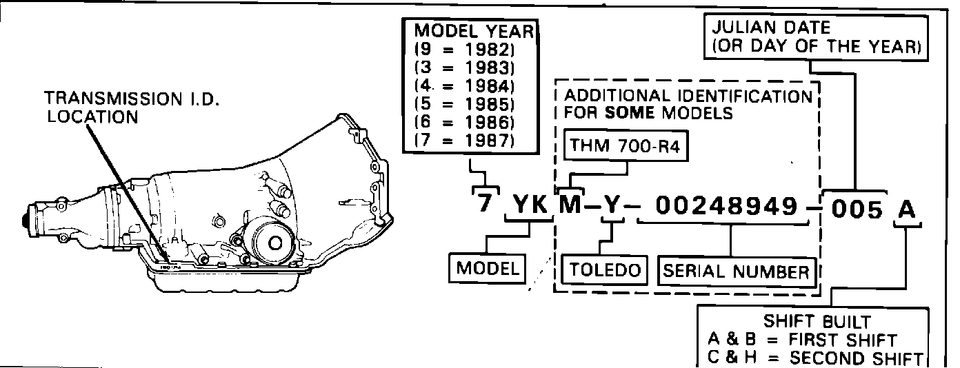 FIGURE 1 - THM 700-R4 TRANSMISSION IDENTIFICATION INFORMATION: