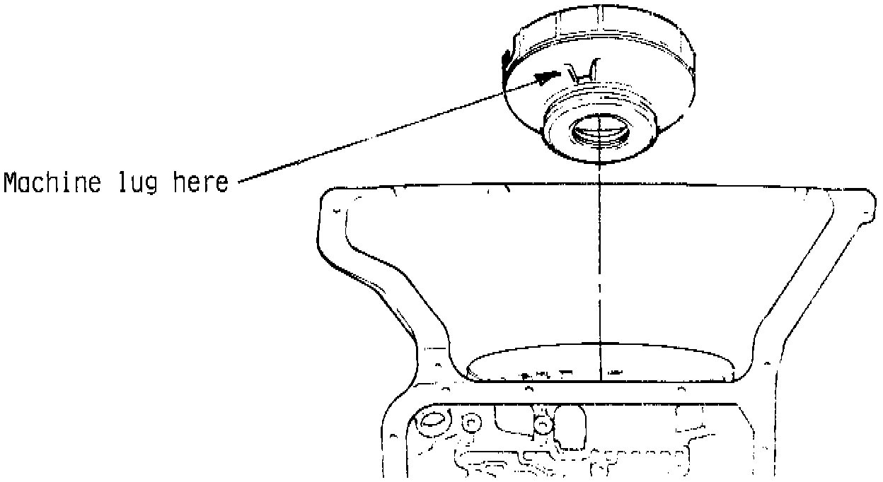 Check the fit of the low reverse piston in the case by installing piston and trying to rock it from side to side. If piston rocks, modify locating lug on piston by grinding a small amount from side of lug until piston will fit flat in case. Be careful not to remove too much material from the lug or the piston could rotate far enough so that it interferes with the parking pawl.