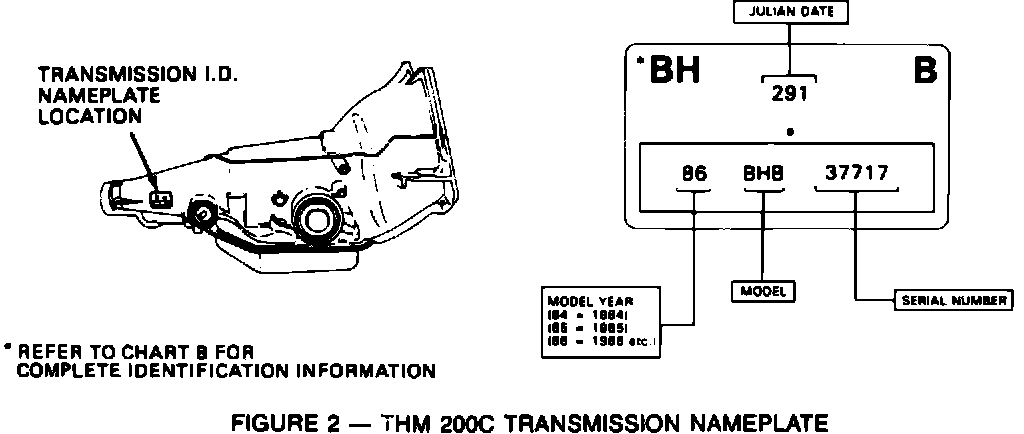 FIGURE 1 - THM 200-4R TRANSMISSION NAMEPLATE: