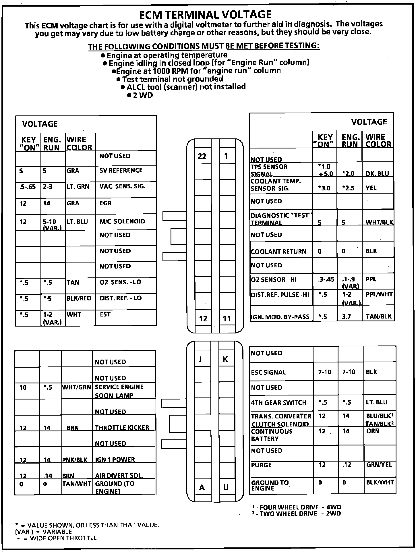 ECM Terminal Identification & Voltage Specifications: