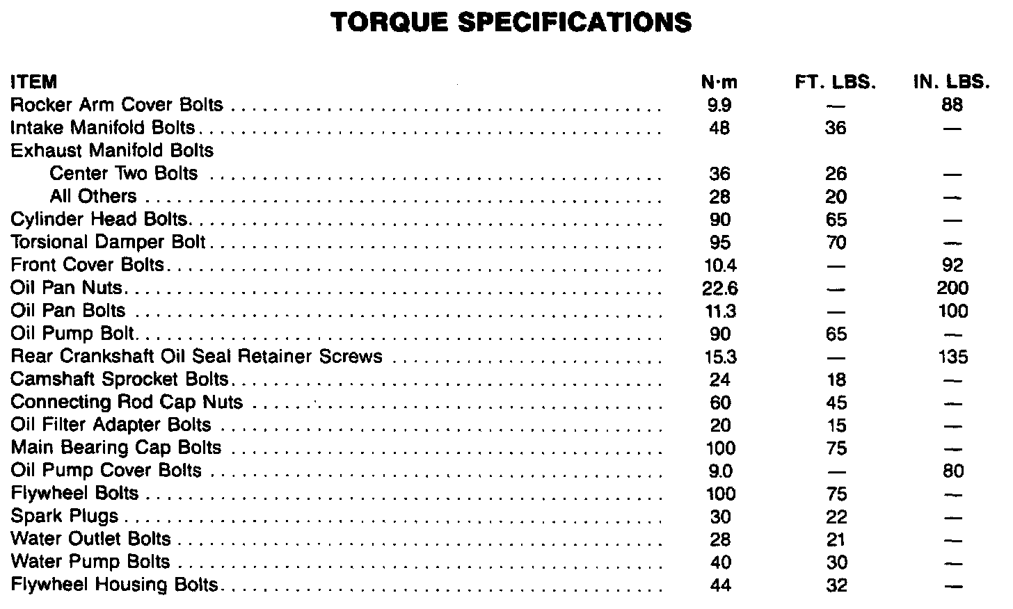 Torque Specifications: