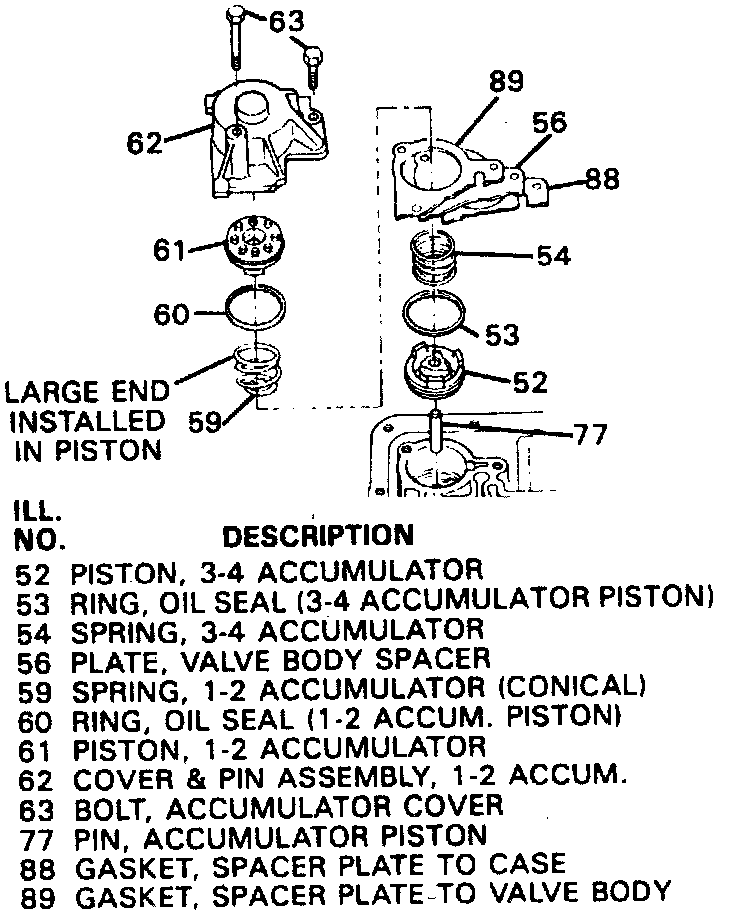 22. Install 1-2 accumulator cover and pin assembly onto case, torque attaching bolts to 8 ft lbs.