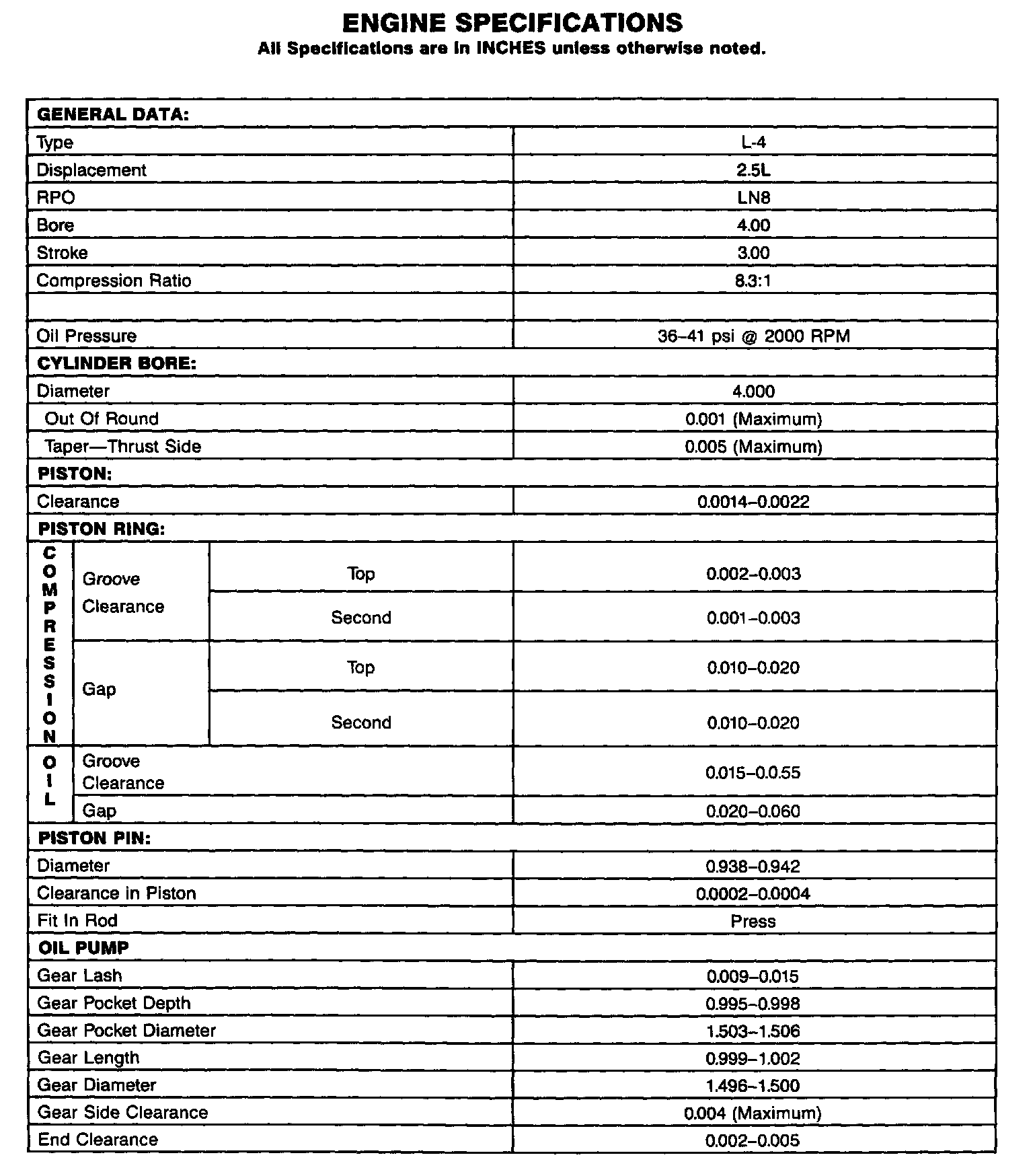Engine Specifications: