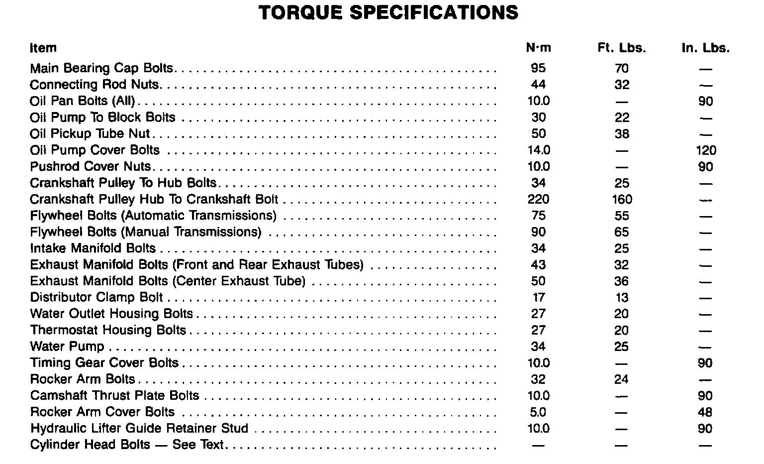 Torque Specifications:
