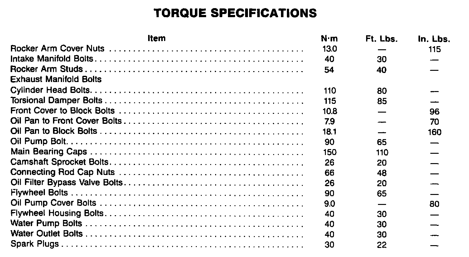 Torque Specifications: