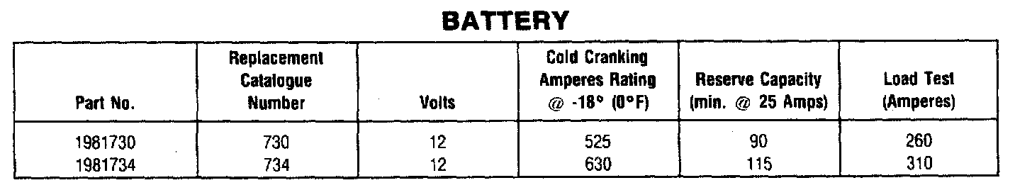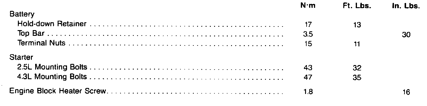 Starting and Charging: Specifications