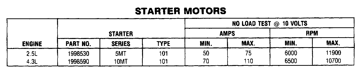 STARTER SPECIFICATIONS