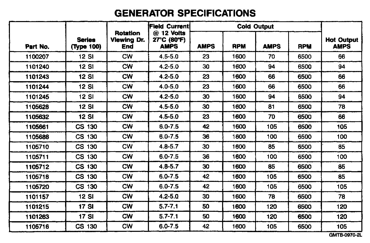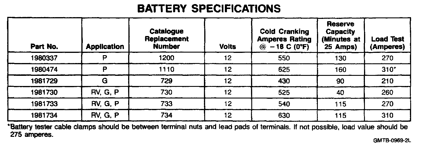 Starting and Charging: Specifications