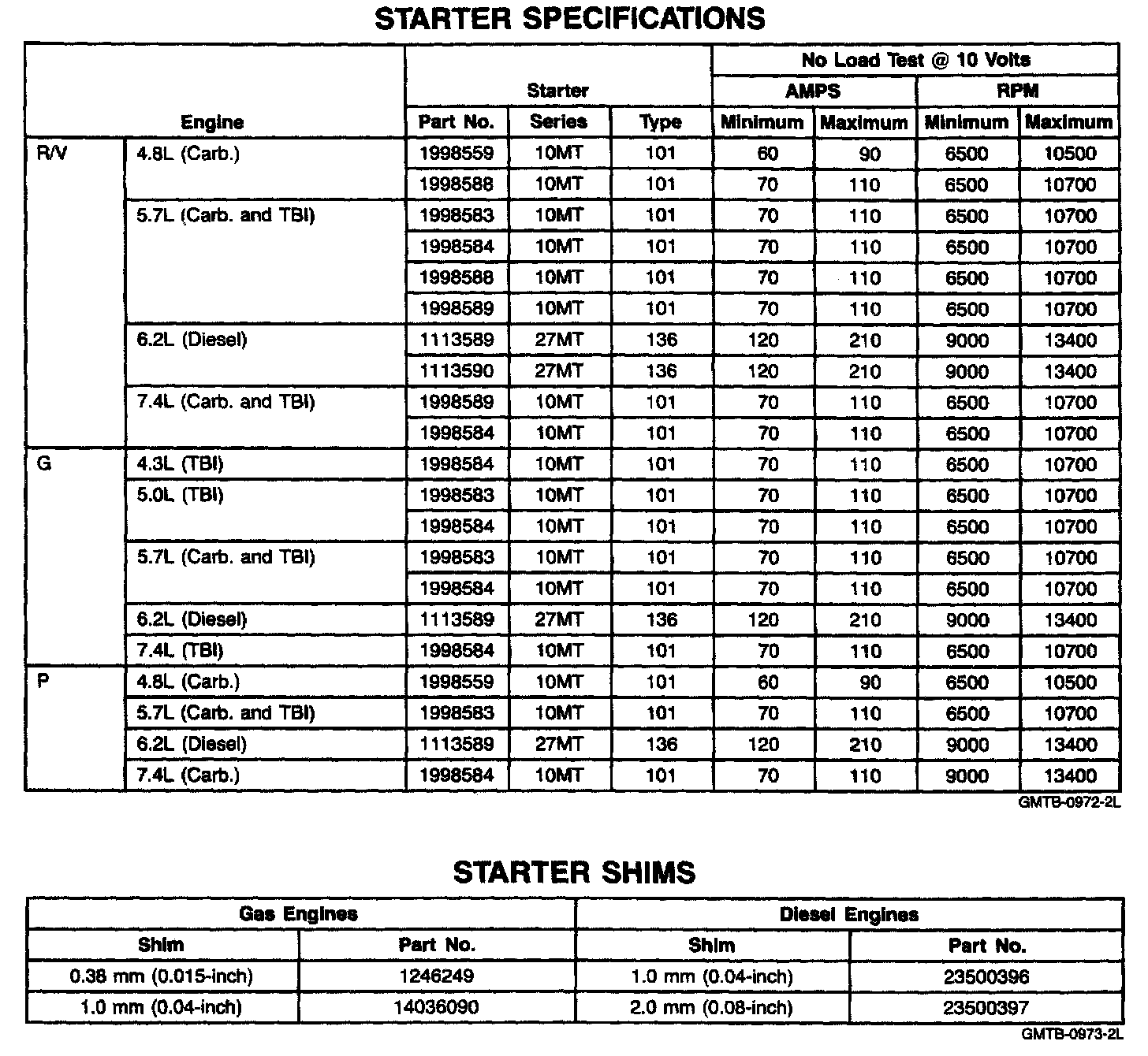 STARTER SPECIFICATIONS