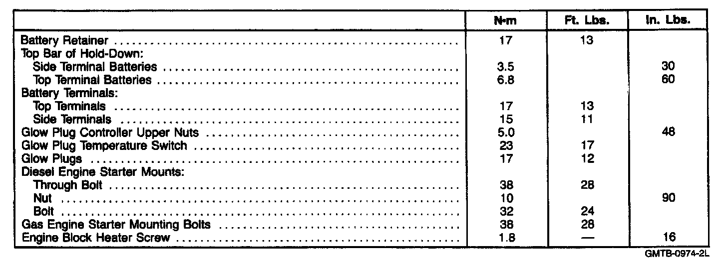TORQUE SPECIFICATIONS
