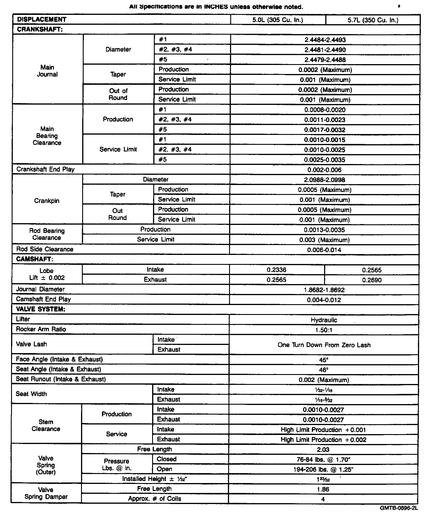 Engine Specifications (INCHES):